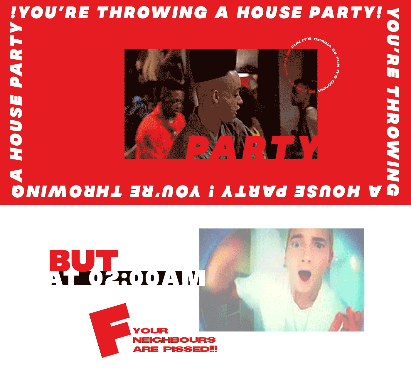 Grumpy neighbors kill house parties. This campaign idea never saw the light of day but, if it had, it would have roared until the break of dawn.